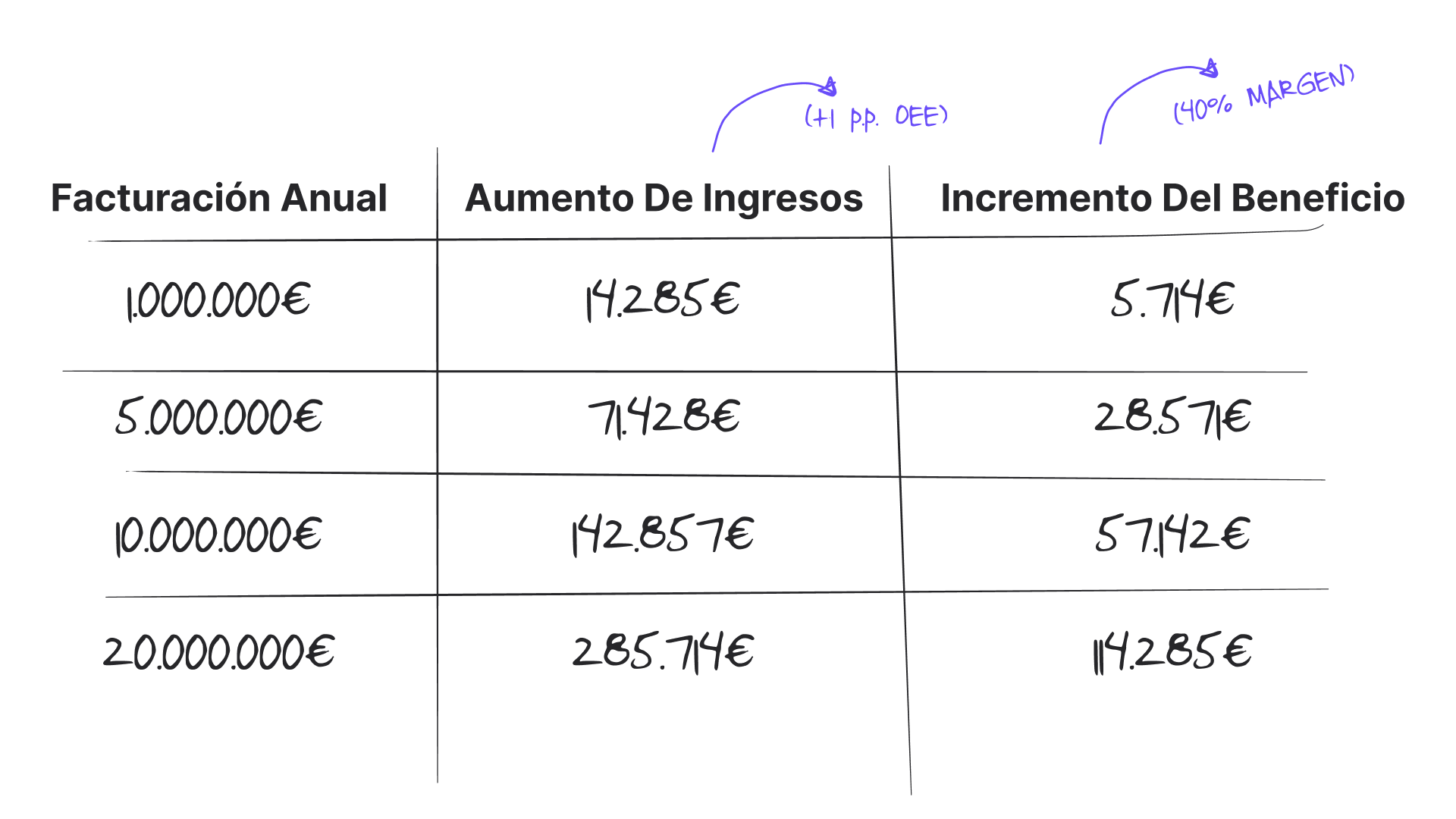 • Para aumentar la producción: Puede entregar 71.428 € adicionales en facturación sin contratar a un solo operario extra ni invertir en nueva maquinaria.